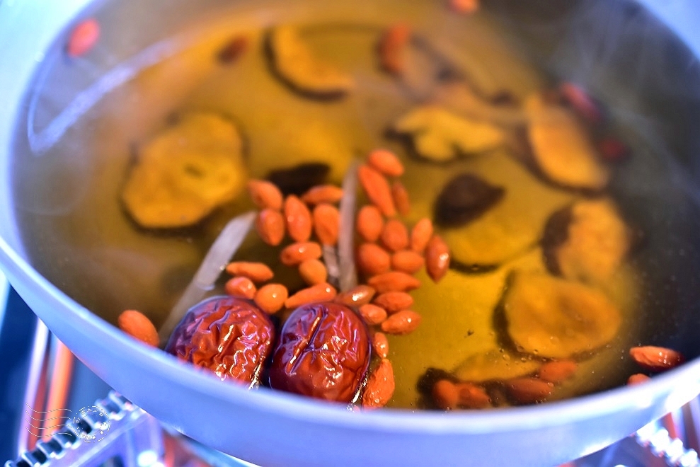 ↓太滋補、太健康了!單喝湯頭時,黑瑪卡的滋味有點像烘焙過的穀物,淡淡的苦香裡透出一絲甘甜,帶著養生茶湯般的溫潤氣息。