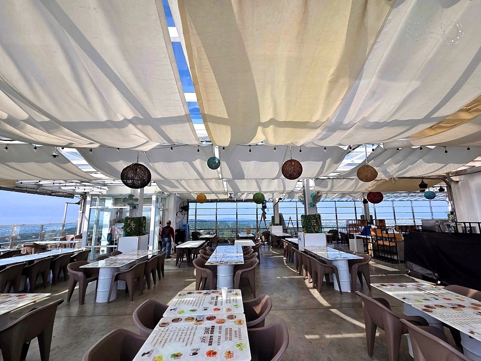 ↓電梯門一開,迎面而來的是令人驚嘆的開闊視野——真的是名副其實的「360°環景」用餐空間!現場雖然仍在進行部分收尾工程,但已能感受到那份開放與自由的氣息。