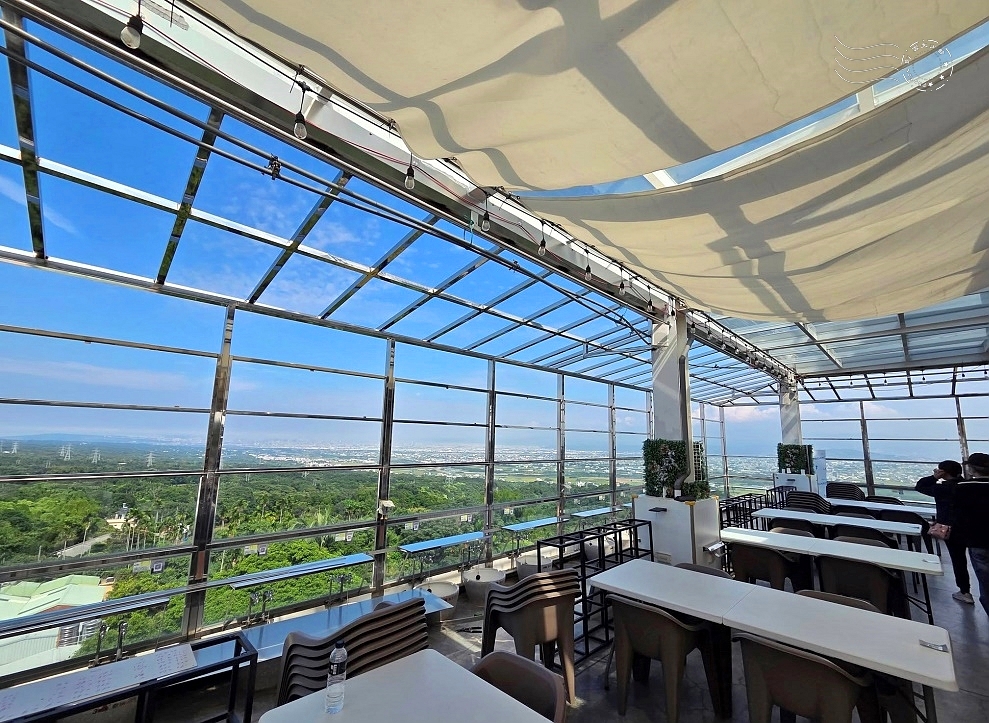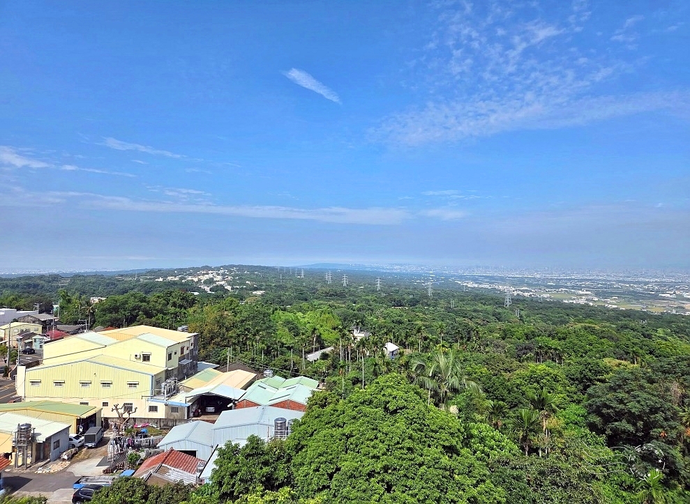 視野從山脈掃向平原,遼闊得幾乎能橫越半個中台灣!老闆說,往東能遠望南投九九峰與中央山脈,天氣好時還能隱約看見玉山主峰;往西則是整片彰化平原,一路延伸至鹿港外海;北面則可眺望台中市區的天際線,夜幕低垂時燈火閃爍,堪稱百萬夜景。
