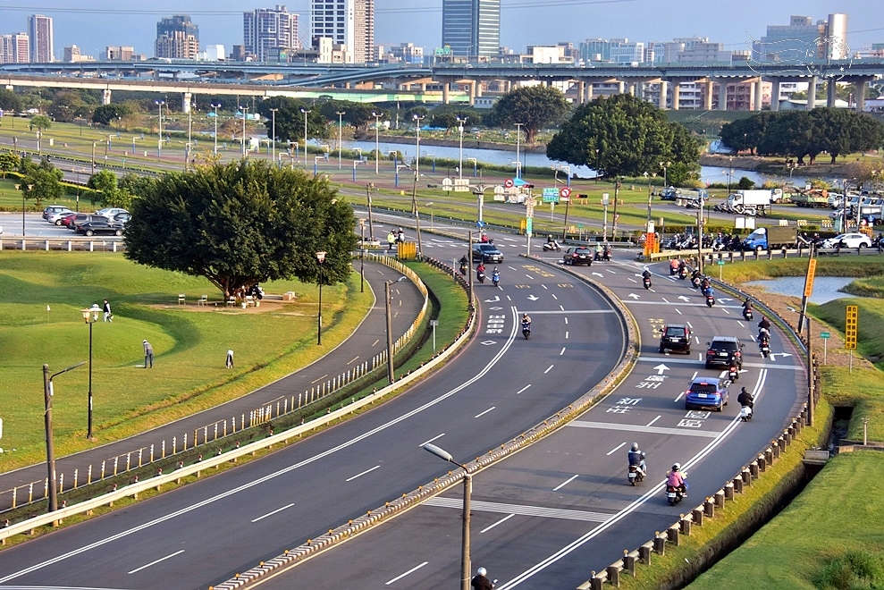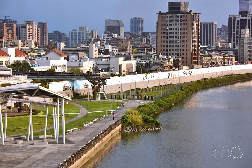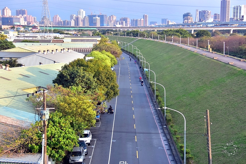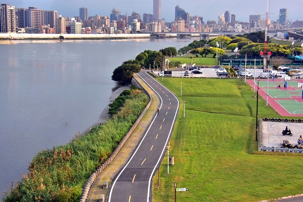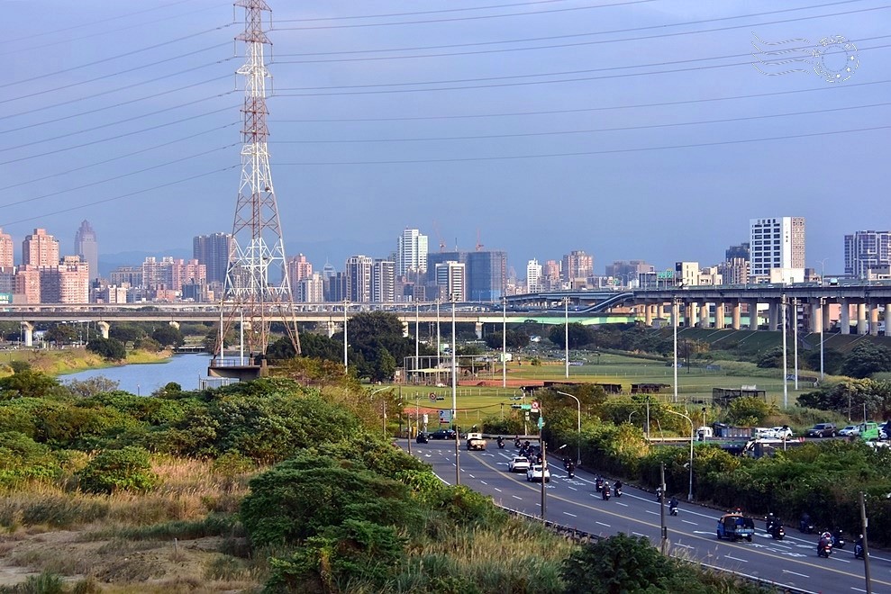 一路掠過新莊區與泰山、五股交界,河道寬廣,河岸留白充足,是大漢溪流域。大漢溪左岸河濱公園以及新莊副都心的天際線令人讚嘆。