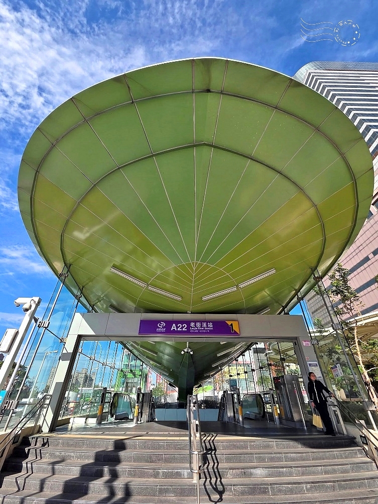 ↓若不是從空中俯瞰,或用超廣角鏡頭捕捉,很難發現老街溪站的出入口,竟設計成一片完整的葉片造型。線條柔和又充滿自然意象,在理性交通設施中,隱藏著出乎意料的浪漫。