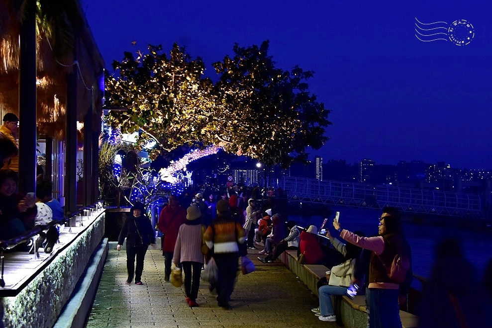 ↓黃槿樹身的聖誕燈閃爍,這樣拍起來,是不是很有電影感?