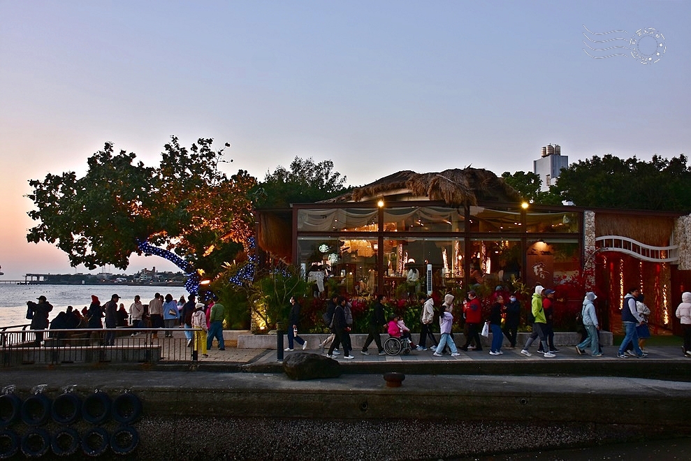 ↓剛好走到星巴克前,暖橘被沒收了,對面【水灣餐廳榕堤店】的天際被淡青佔據。這家峇里島風的餐廳見得熟了,卻沒有進去過,各位想不想看開箱?我已經跟朋友約好了,等秋天她從異鄉歸來時,要在這裡告訴我旅途中的故事。