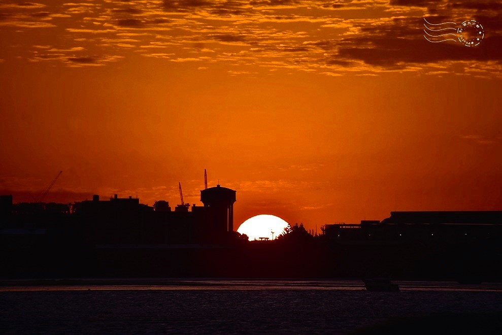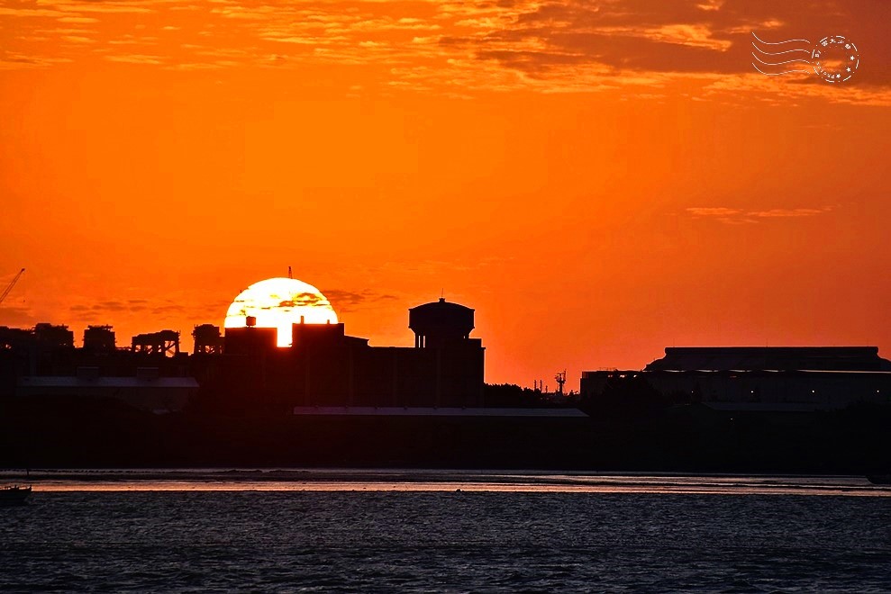 不過今天的淡水夕陽卻不是下沉於水平面,反而是沒入對岸八里的城市剪影中,於光影交界處,勾勒出一座以前從未細看的無聲之城。