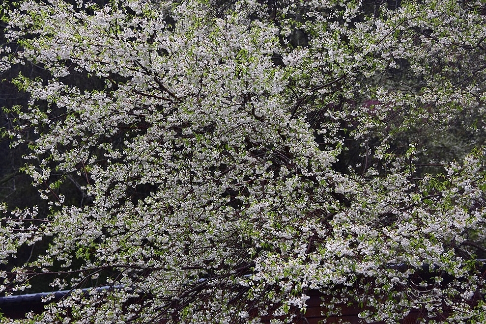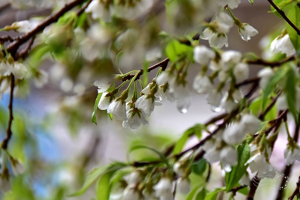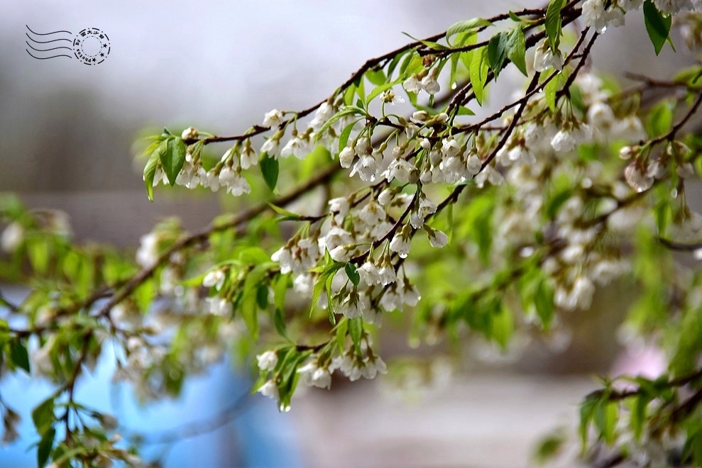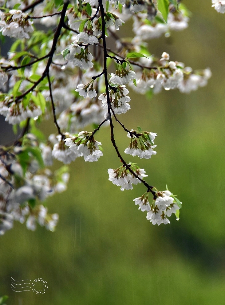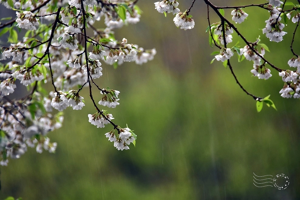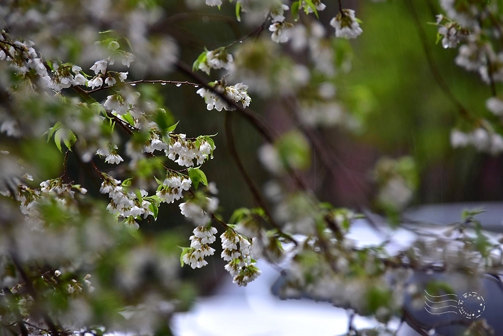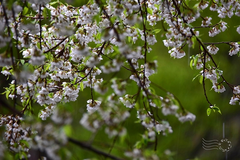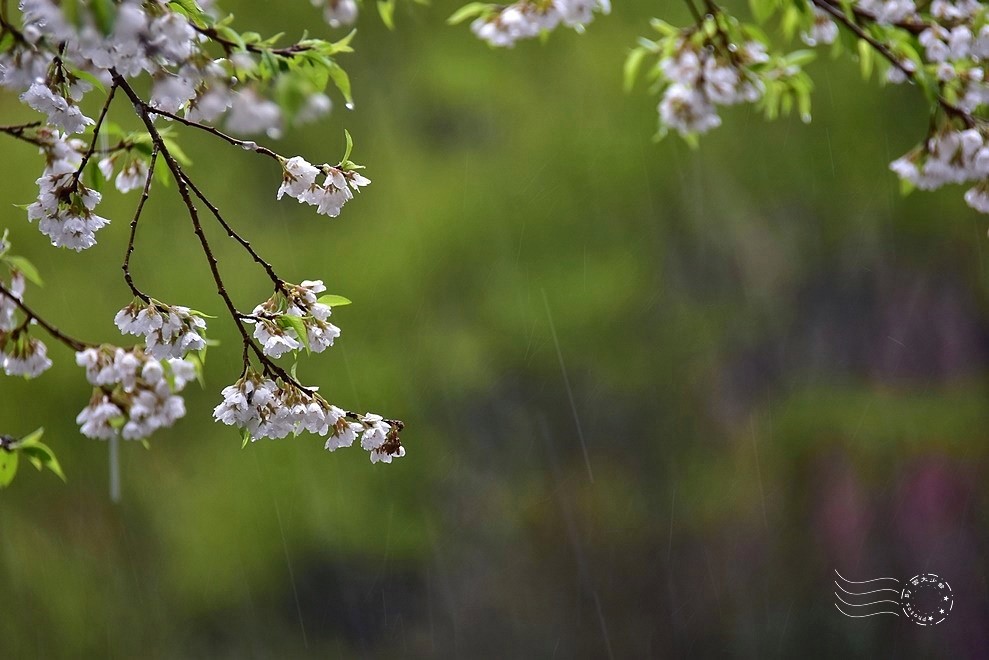 此刻,大雨肆虐,夾雜著春雷,花朵微微闔上些許花瓣,卻無損整棵樹的挺拔風姿,在風雨中展現無畏的姿態。
