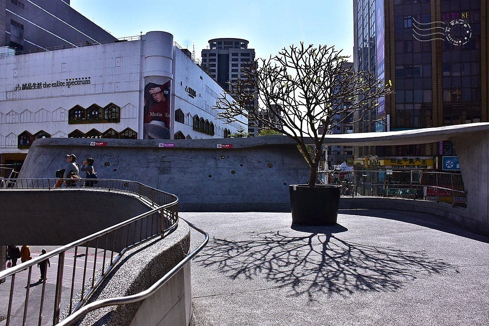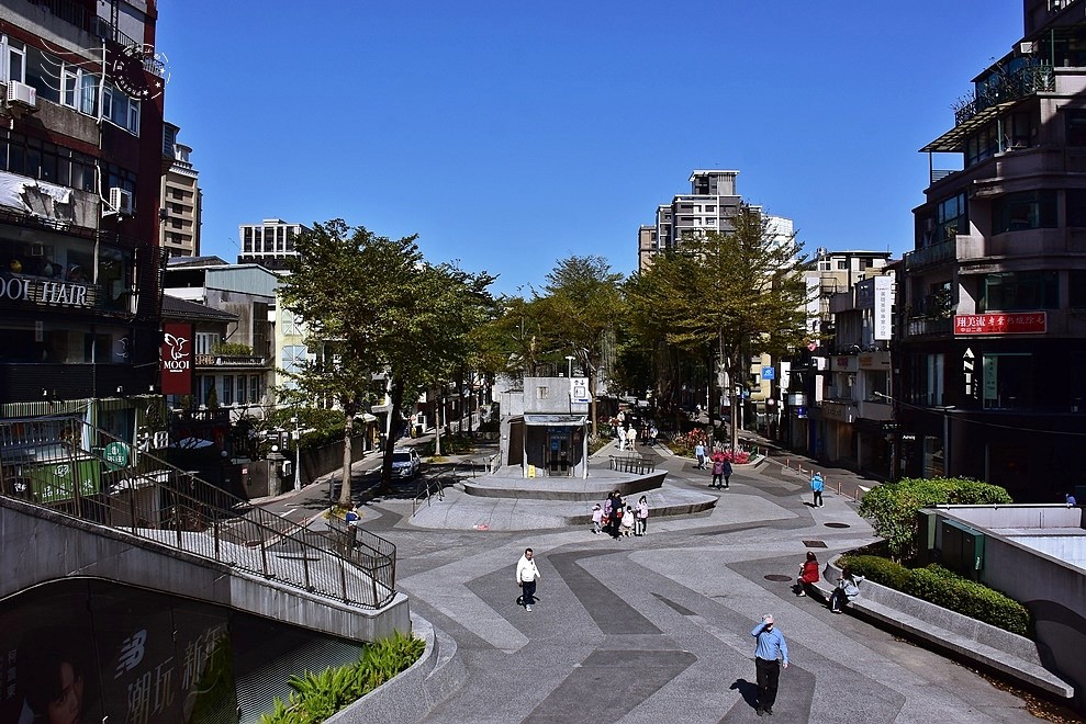 ↓過馬路登上心中山線形公園起始處的觀景台,哈哈,詭計再度得逞,正中午12點,綿延至雙連站的綠色廊道生活圈,遊人三兩,暫時空曠得很。