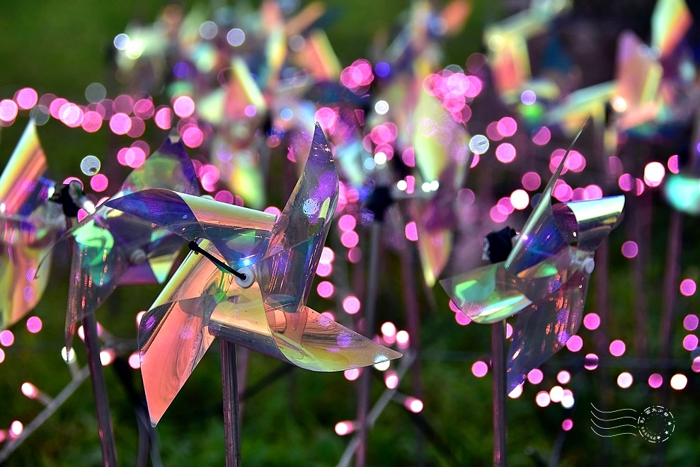 河畔大草坪的風箏、風車,似乎傳達出寬闊與自由的概念,恰如河畔賞燈的感受。