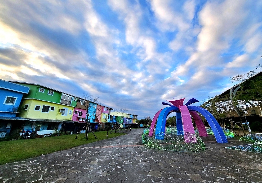 ↓就順著環河步道走,前方為「彩虹迷廊」,一組組家庭出遊必須打卡的景。
