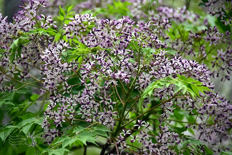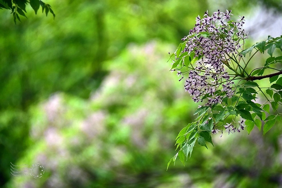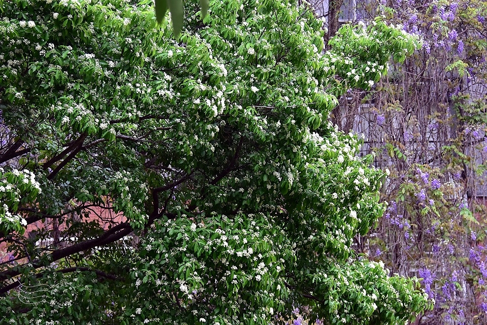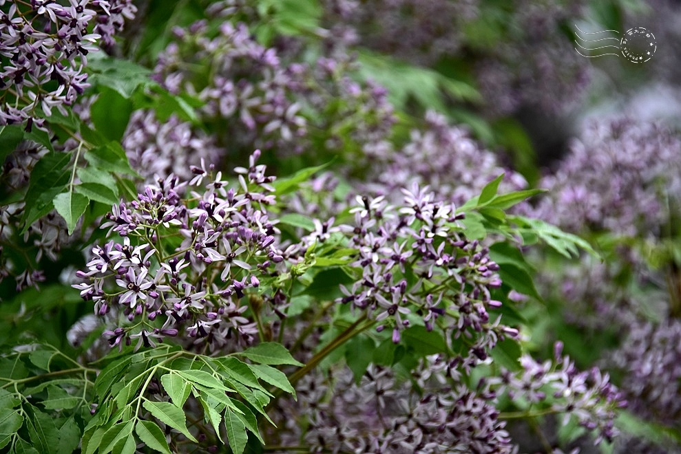 ↓再往校園裡走,熟悉的春天信差——苦楝花正值盛放,雨氣氤氳的空氣中瀰漫著淡淡清香。