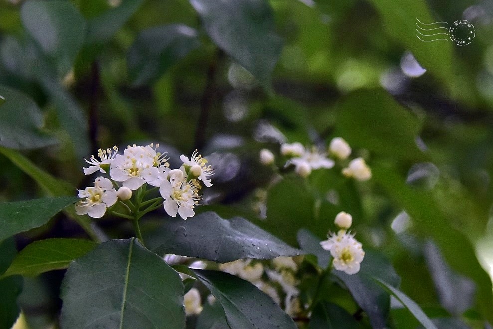 小白花密密簇簇,每朵僅約 0.8~1 公分,五瓣圓潤,中央一圈淡黃色雄蕊精緻迷人。團簇綻放於枝端,清麗可愛,乍看間竟有幾分像「長在樹上的麻葉繡線菊」。