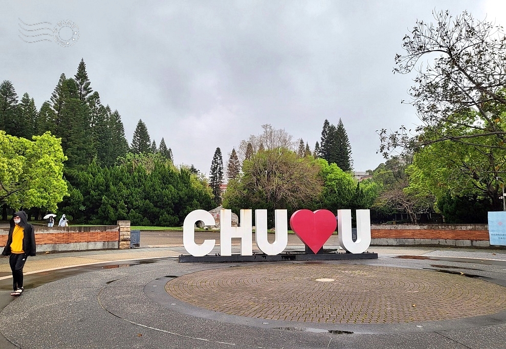 ↓中華大學位於新竹縣新豐鄉,地處山坡地上,離新竹市區約 15 分鐘車程。一到校門口,就見到一個特別的造景「CHU ❤️ U」,簡單的字母與愛心符號組合,寓意「中華大學愛你」,既親切又富有趣味感,成為師生與遊客拍照的打卡點。