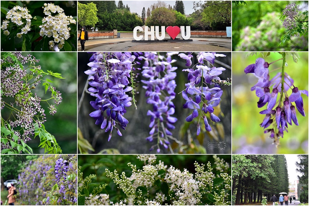 紫藤花原本是外來種,在台灣栽培並不容易,花期也相對短暫。北台灣最知名的賞紫藤景點,莫過於我已連續幾年造訪的【淡水紫藤園】。一直聽聞新竹中華大學的紫藤花同樣美不勝收,也嚮往已久,於是這天便隨旅行團前來一探究竟。