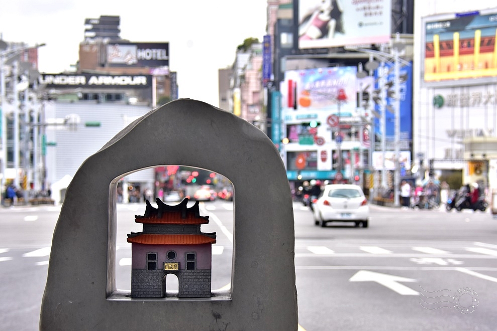 寶成門,就是臺北府城西門,毀於1904年,是臺北府城唯一被拆除的城門。這個小小的紀念碑,跟古老照片中的原貌,有種等比例縮小的感覺哩!