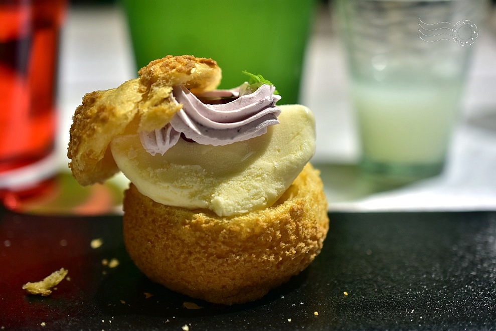 ↓泡芙本來就是甜點中我的最愛,尤其是口感夠鬆脆的,這個完全及格。冰淇淋跟覆盆子,更是令人幸福。