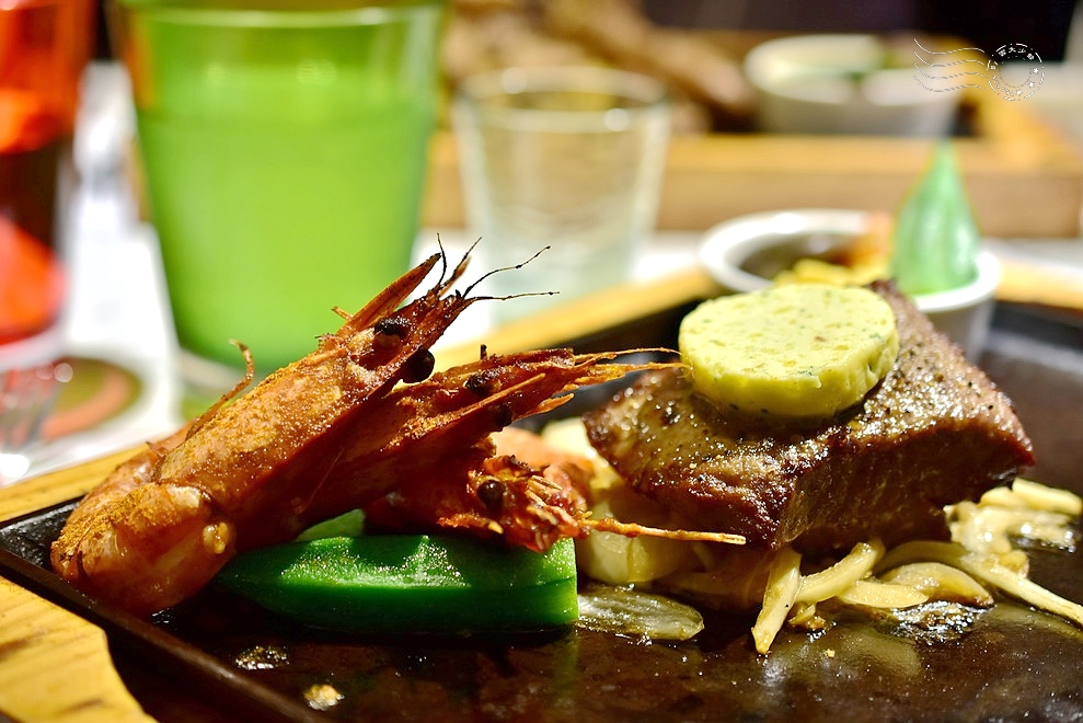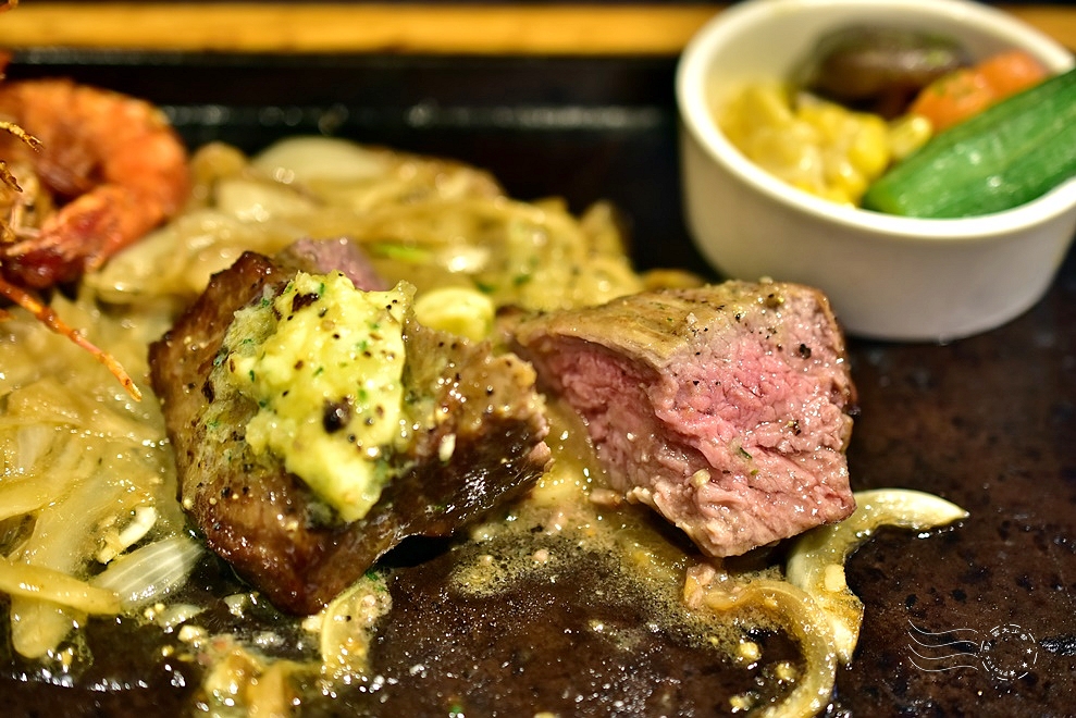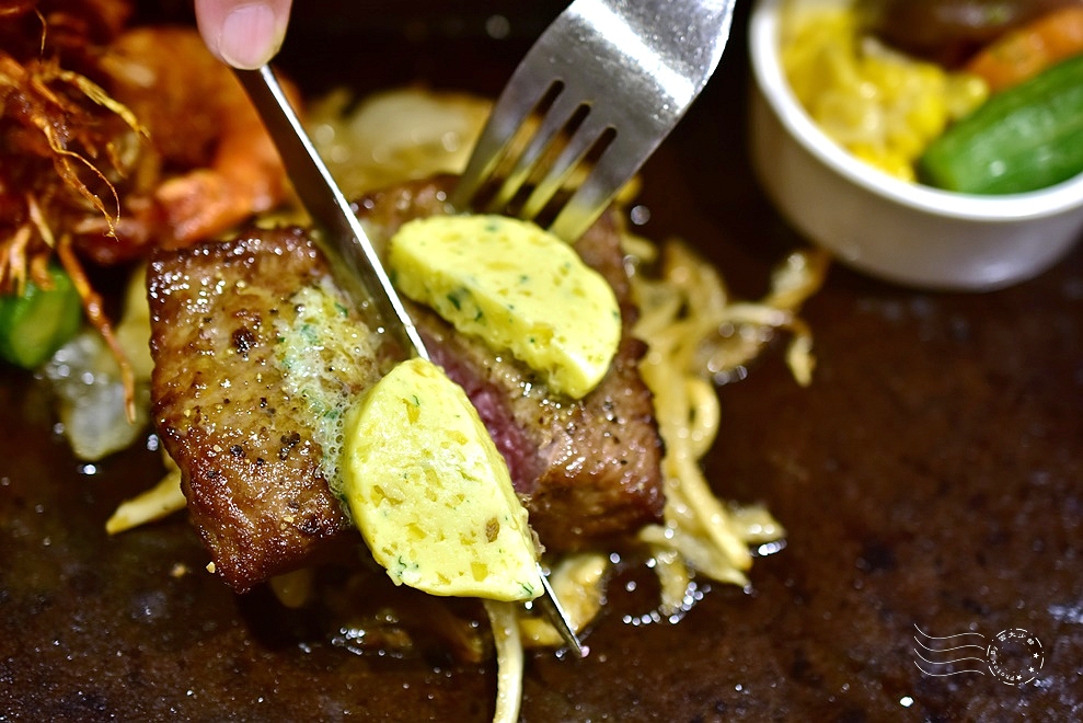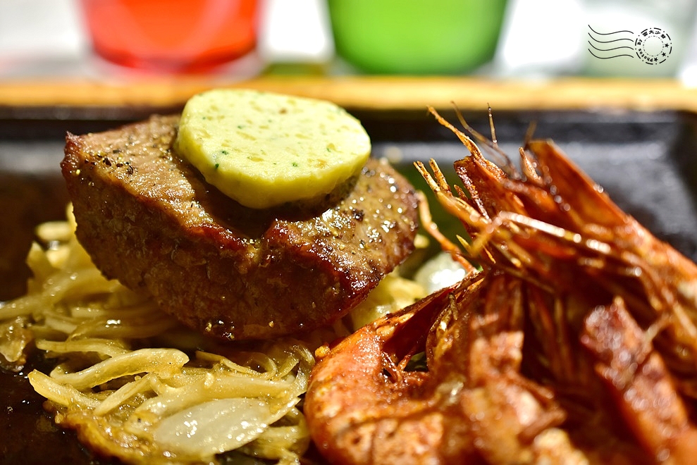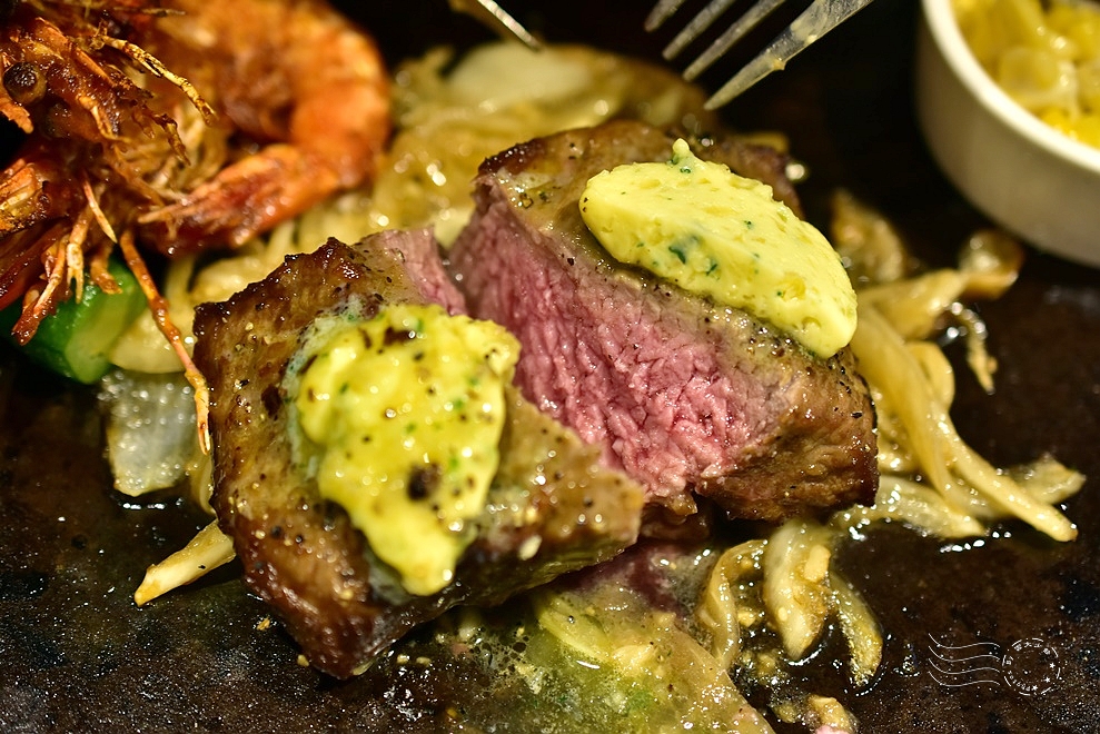 海陸雙拼的內容不定時會更改,今天剛好是菲力牛排和鮮蝦的組合,牛排上還有一塊混合香草、蒜末、檸檬汁和其他調味料的香草奶油,恐怕是最超值的一款主餐了。