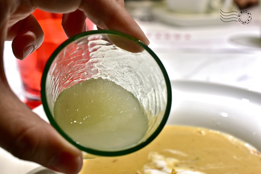 ↓來了,主餐前,王品檸檬沙瓦登場了。醋和檸檬調味的甜冰沙,達到重置味覺的作用。