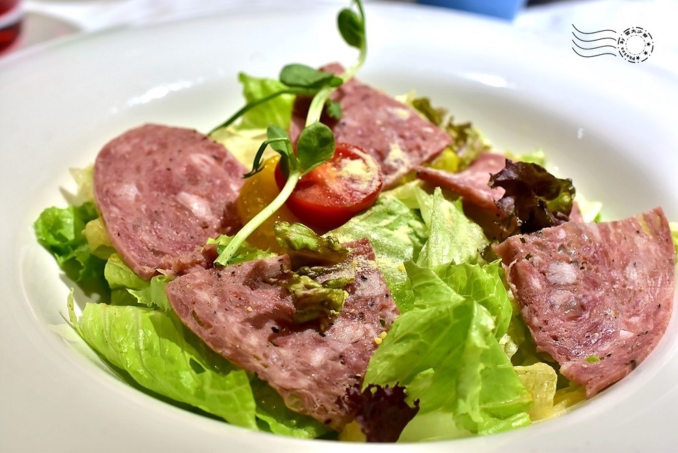 ↓牛肉火腿生菜沙拉:火腿是美國牛,生菜下也有馬鈴薯。