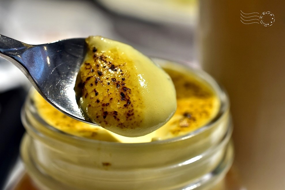 表面炙燒,內裡布丁柔嫩奶但質地,搭配微甜微澀的紅茶,飲料+甜點,完美平衡。