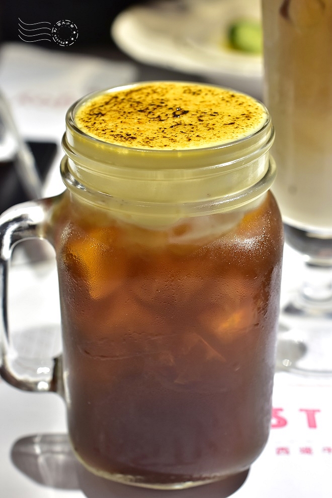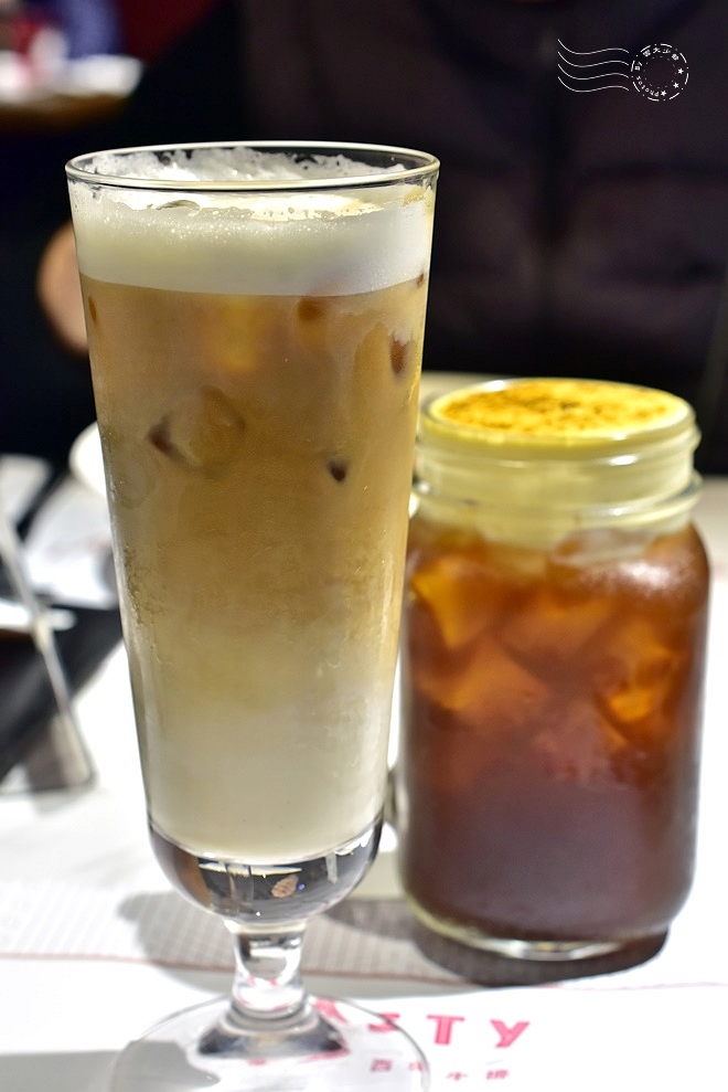 ↓點餐畢,要求飲料先上——冰拿鐵咖啡,以及布蕾香紅。