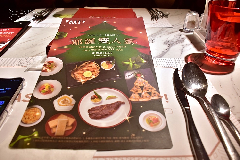 眾所周知,西堤的餐點原則上以包含了主餐、開胃品、沙拉、麵包、湯品、飲料和甜點的個人套餐方式呈現,經典套餐的定價為$698,所有餐點均須+10%服務費。當然,每個品項也可拆開單點。適逢聖誕節,提供有$1588的雙人套餐,但我們還是決定各點一套經典套餐。