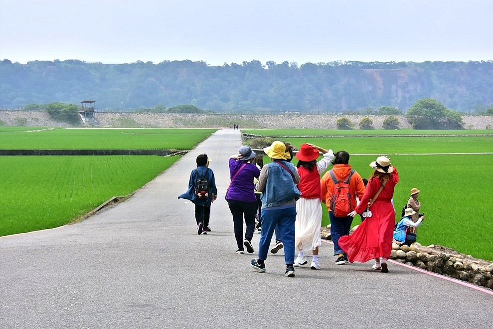 此時正是第一期春季稻作插秧後的生長階段,無邊的翡翠稻浪,有孕育著希望與豐收可能的欣欣向榮。