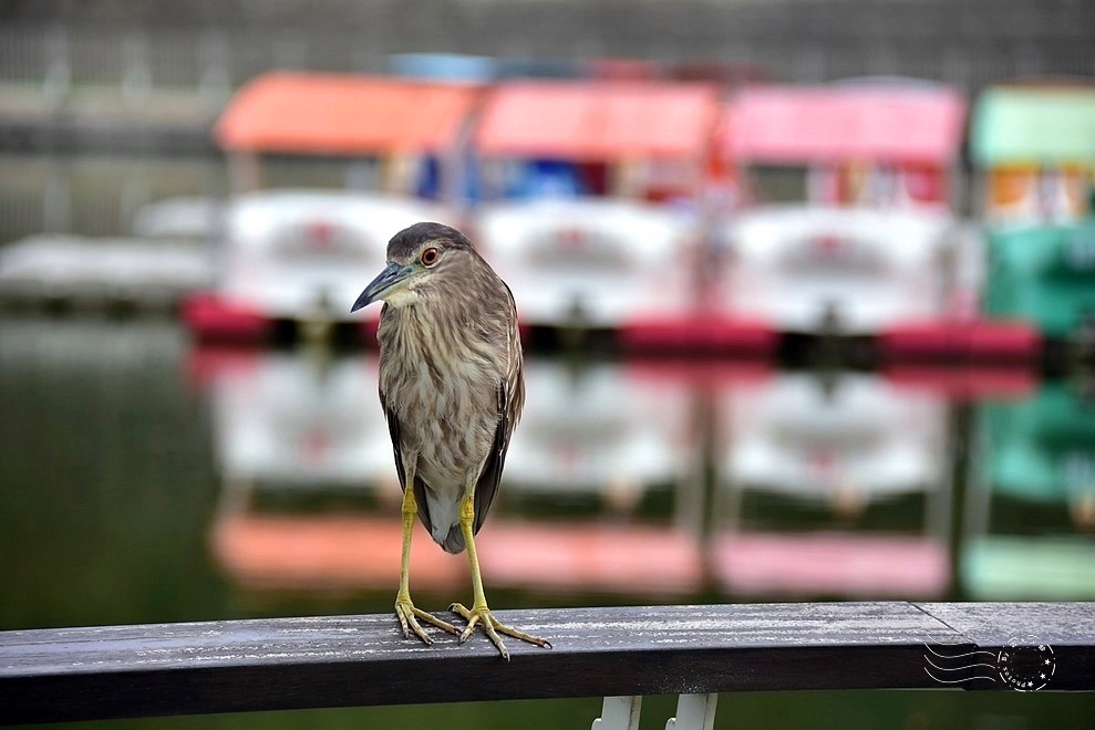 ↓特別邀請現場兩隻夜鷺來當麻豆,以湖面倒影的散景來當背板,拍起照來效果尤其好。