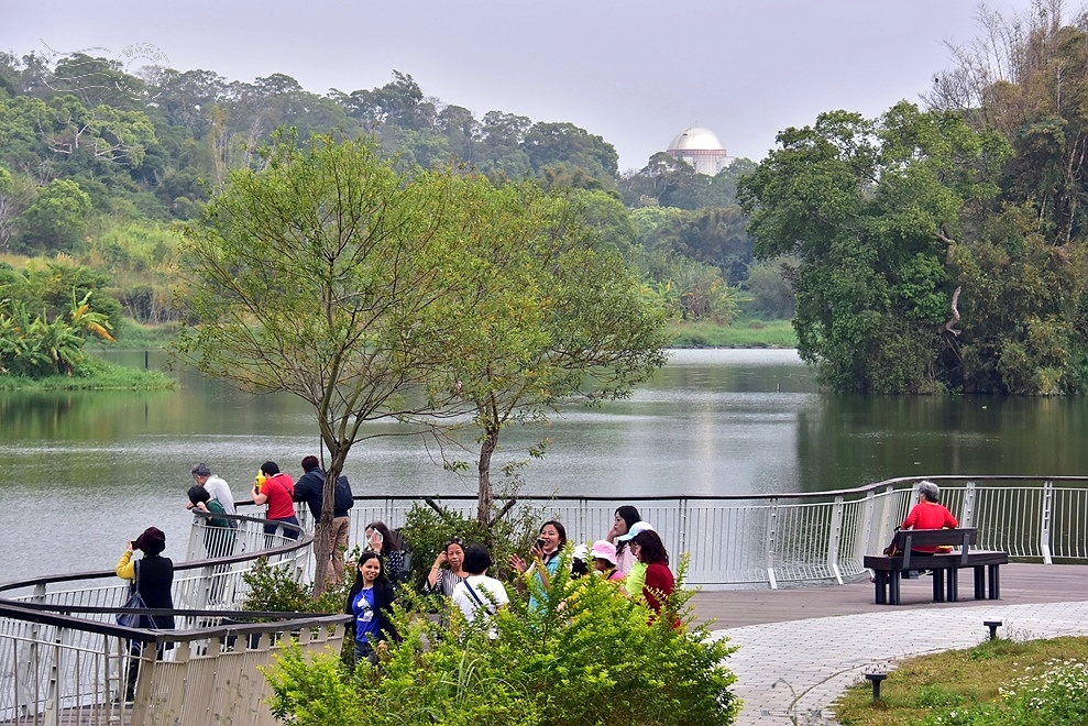 青草湖的環湖步道,串起觀景平台、鳳凰橋、映月橋一路到于飛島,繞行一圈大約 2 公里。我有預感這離新竹鬧區不過4公里的郊遊聖地,以後多得是機會造訪,所以今天就先偷個懶,暫時不走完整的步道了。