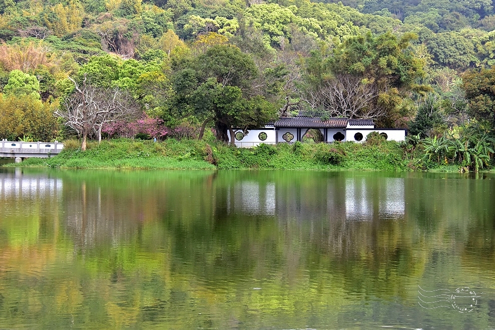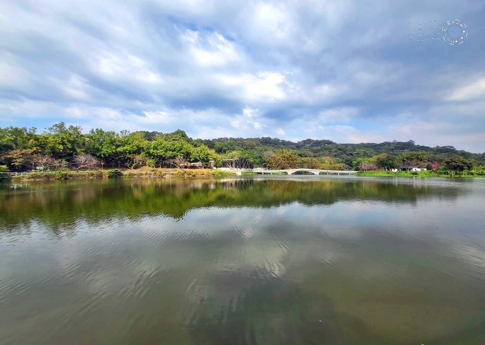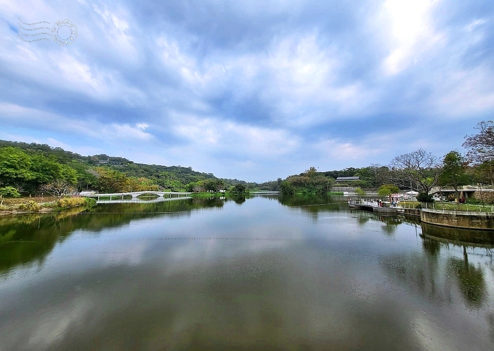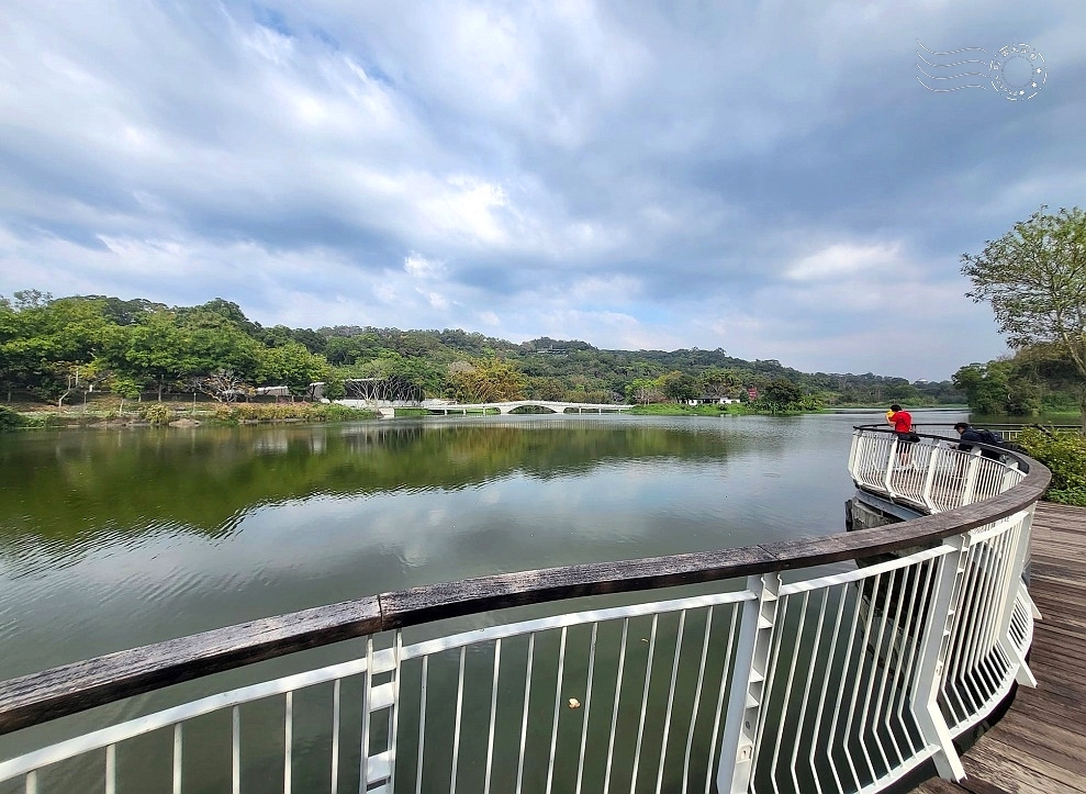 ↓站在觀景平台上,180 度的湖景盡收眼底。雖然此刻天色略顯陰霾,但波平如鏡,天光雲影倒映湖心,不禁想起《太湖船》的歌詞:「山清水明幽靜靜」,不正是眼前景象最貼切的寫照嗎?