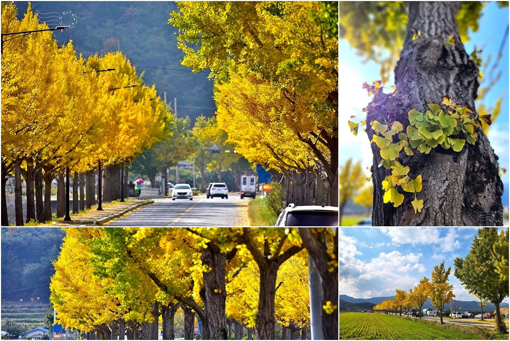 這是韓國賞楓之旅第二天的中午,我們從大邱來到位於韓國東南部慶尚北道的慶州市南山附近,預備享用一頓連韓國在地也不是那麼普遍的風味餐。 ↓當車子抵達餐廳,咦?路邊那一排行道樹,...
