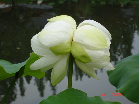註:遊西湖的蘇堤時,巧遇一株雙頭荷花,據說這乃人間罕見奇花,我也是生平第一次看到,不禁嘖嘖稱奇,並為她寫詩紀念。
