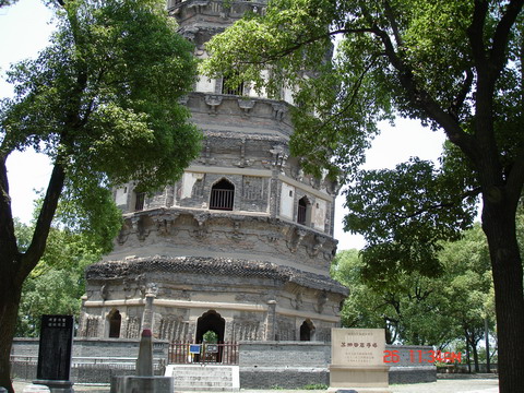 註:這是蘇州古蹟之一「虎丘塔」,塔高50m,因為地質結構與建築誤差的緣故,全塔傾斜四度。