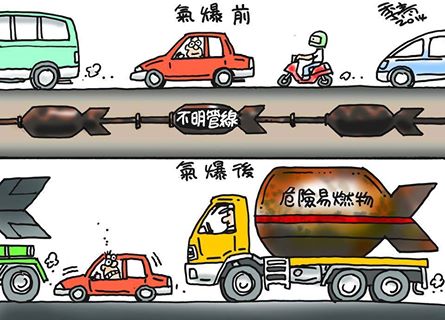 如果罐裝車滿街跑,先不說車禍壓死人,萬一爆炸,那是一點防護都沒有,死傷會更慘烈吧???