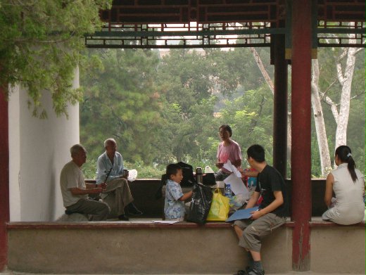 景山公園最有名的歷史大事是明朝最後一位皇帝崇禎慘死自盡山下的ㄧ棵樹下.目前這棵樹已非當時的原樹.聽說很多導遊勸遊客別跟這棵樹照相原因是不大吉利.那信不信由各看官自行判斷.目前登景山萬春亭看故宮.成為中外遊客普遍的活動.只可惜那天天氣太糟糕了..只看到朦朧ㄉ紫禁城.