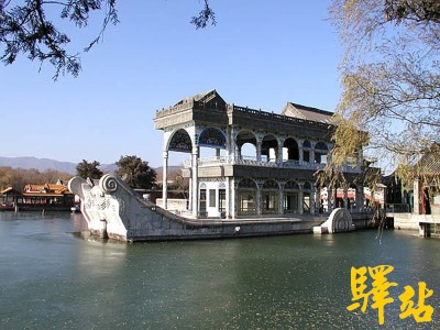 在玉帶橋稍待一會後.繼續遊湖.途中經過慈禧太后的石舫.是頤和園唯一帶有西洋風格的建筑。船用大理石雕刻堆砌而成.正當拍照拍的很快樂之際.忽然相機沒電了.真的是晴天霹靂.
