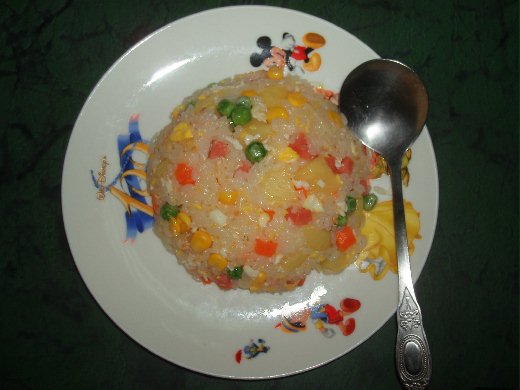 蝦仁,鳳梨(新鮮或罐裝皆可),三色蔬菜,蔥,冷飯,肉鬆