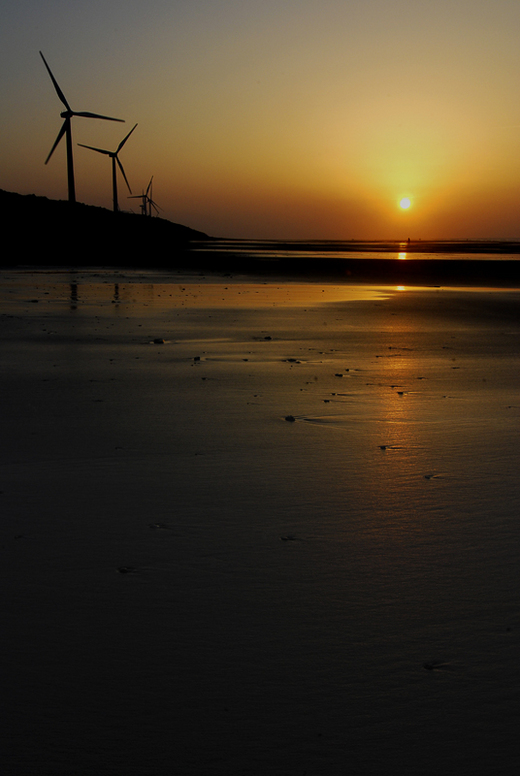 前天星期日下午沒事,便跑到61號公路--大園鄉的濱海去拍夕陽,因為那邊有好多風力發電機,是某次誤走61號公路發現的,所以就一直很想去拍囉,雖然那天沒甚麼雲彩,但是還是蠻漂亮的,PO兩張讓大家欣賞一下囉^^