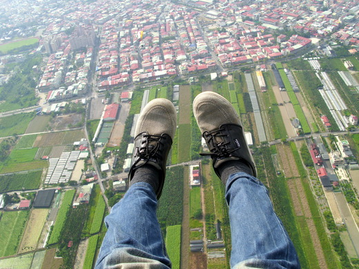 教練指示,調整坐姿與變換手放置位置,接著享受空中飛翔。帶我的教練是埔里