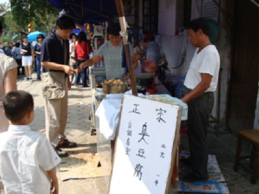 肚子有點餓了, 買串臭豆腐來吃吃,