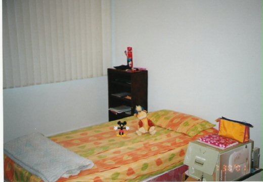 老公美國的同事借我們兩張床墊,一張沙發,一張桌子,四把椅子,兩支立燈,一台小電視,一台大冰箱。