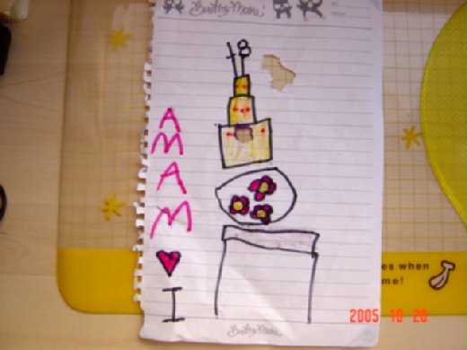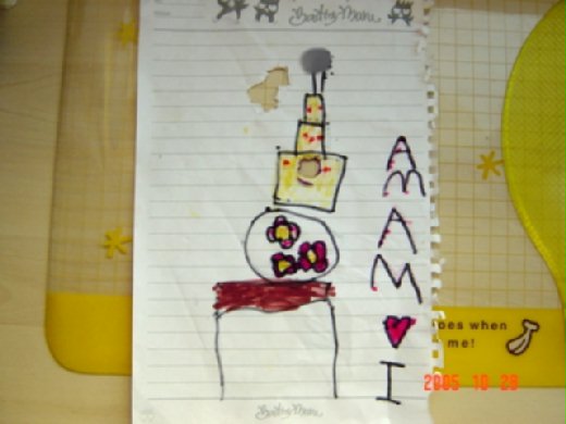 他有點生氣: 馬麻怎麼可以騙人, 我要重畫一個蛋糕了啦!!