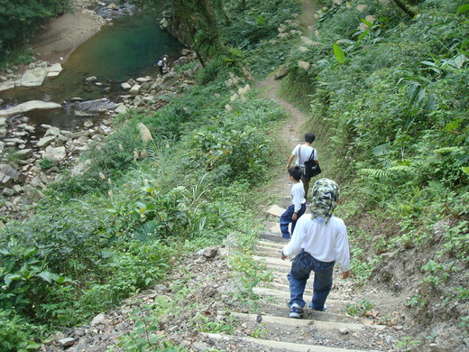 有台階向下可以走到溪邊, 看起來路並不好走,