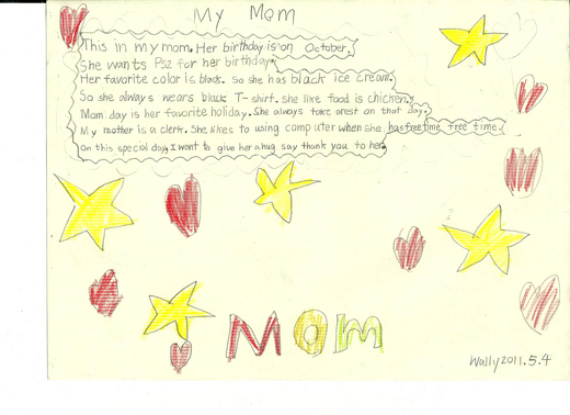 其實是前幾天Wally說有一項英文作業, 要問媽媽一些問題,