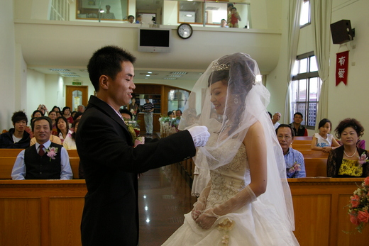 當新娘說:我願意 感動了整場的人 當新郎把戒指套到新娘手上