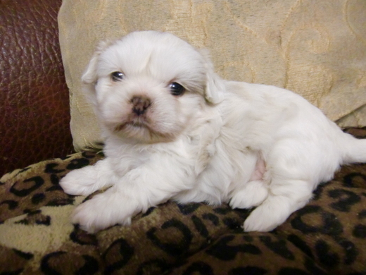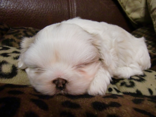 我們家的牙牙生了一隻幾乎全白的西施 好可愛 我們幫牠取名叫(妞妞) 全家人回