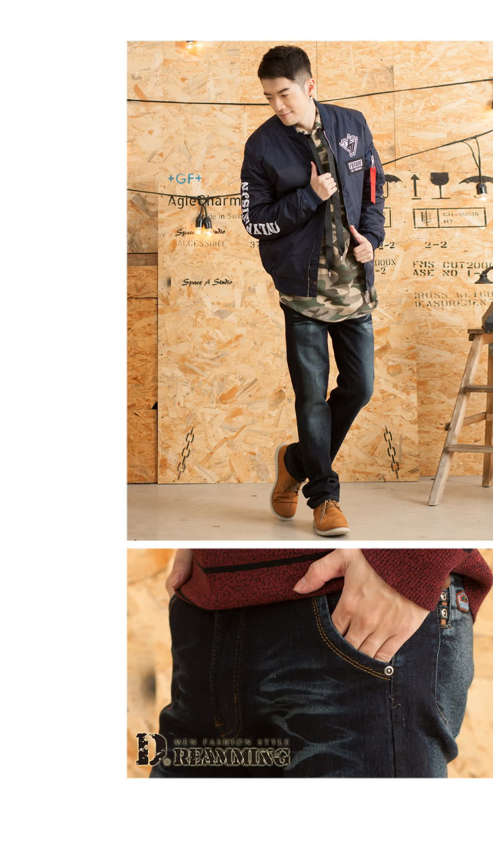 街頭穿搭男【Dreamming】率性皮標刷白伸縮修身直筒牛仔褲心得文