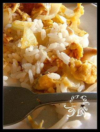廚房只剩下洋蔥和蛋和一碗冰的白飯。
