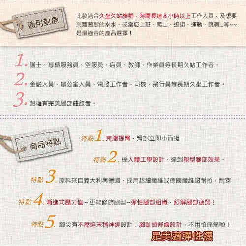看完了【足美適彈性襪】超重壓超緊實560DEN西德棉機能褲襪一組兩雙(翹臀塑腹-壓力襪-顯瘦腿襪-醫療襪-彈力襪)介紹