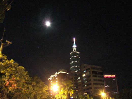 為了讓大家共賞一輪明月,特別開車在台北101大樓附近轉,想取個好景讓大家看一下台北上空的中秋節月亮喔,雖然,聽說明天的月亮才會是最大最圓的時候喔!但畢竟今天才是中秋節喔!