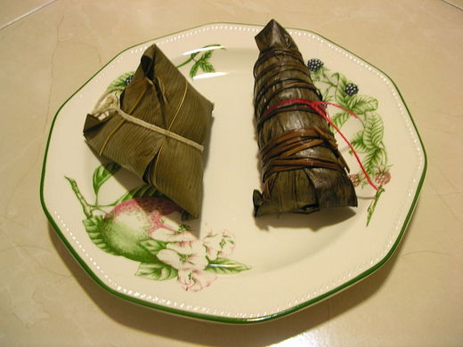 中國大陸的南方粽(上圖右)及北方粽(上圖左)