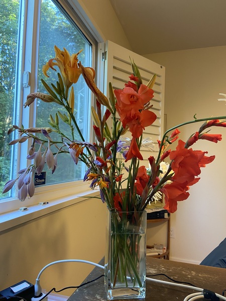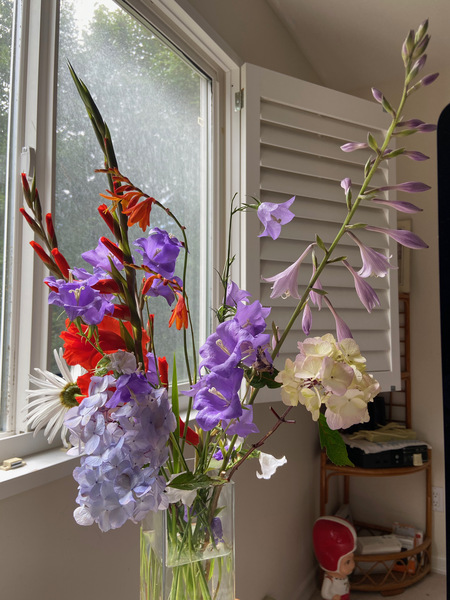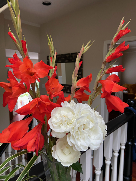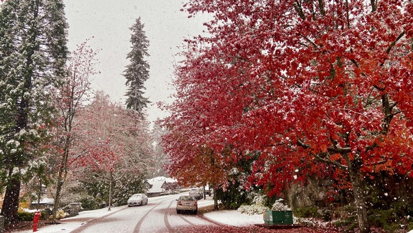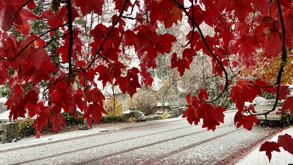每年五月開始, 家中恒然鮮花不斷. 這花謝了, 那花開, 都是陸續自園中剪入的. 到了秋天, 門前街上, 红楓成排, 美的令人驚艷; 入冬之後, 白雪紛飛,大地一片白.